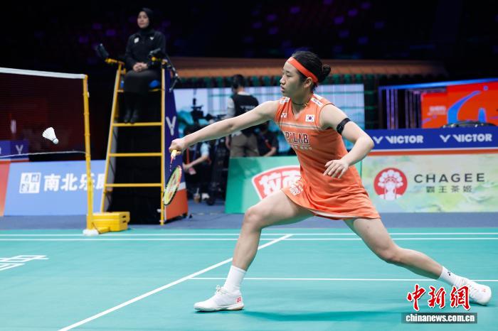 ,取得女单冠军。图为安洗莹正在角逐中交球。中新社记者 肖健 摄2026羽毛球亚锦赛:韩国选手安洗莹夺得女单冠军