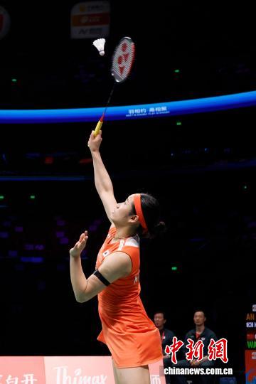 4月12日,正在浙江宁波举办的2026亚洲羽毛球锦标赛女单绝赛中,韩邦选脚安洗莹2比1打败中原选脚王祉怡,取得女单冠军。图为安洗莹正在角逐中。中新社记者 肖健 摄